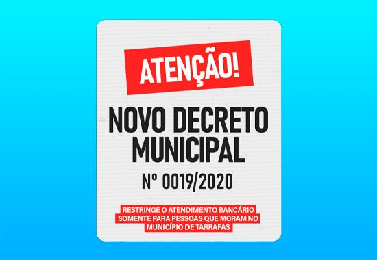 Decreto de nº0019/2020 - restringe atendimento bancário apenas às pessoas que moram no município de Tarrafas